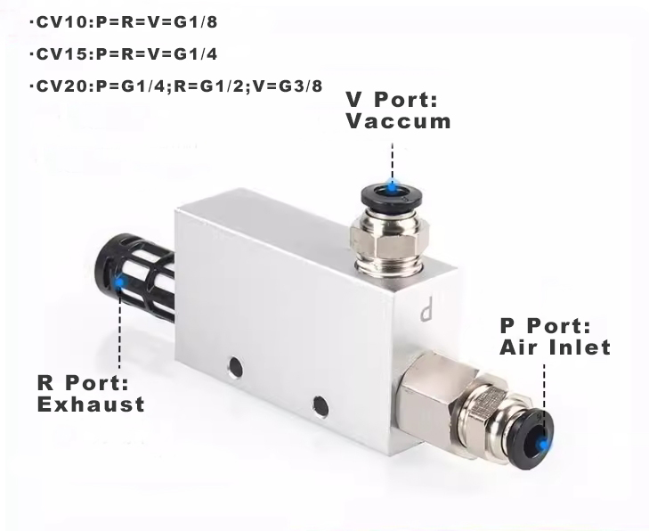 CV సిరీస్ వాక్యూమ్ జనరేటర్ వేర్వేరు పారామితులు