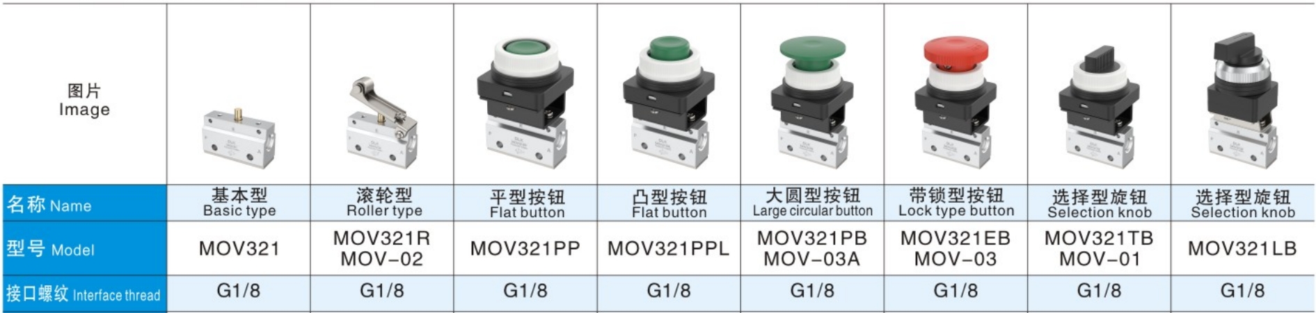 MOV321 సిరీస్ మెకానికల్ బటన్ కంట్రోల్ వాల్వ్ 3 వే సాధారణ పారామితులు