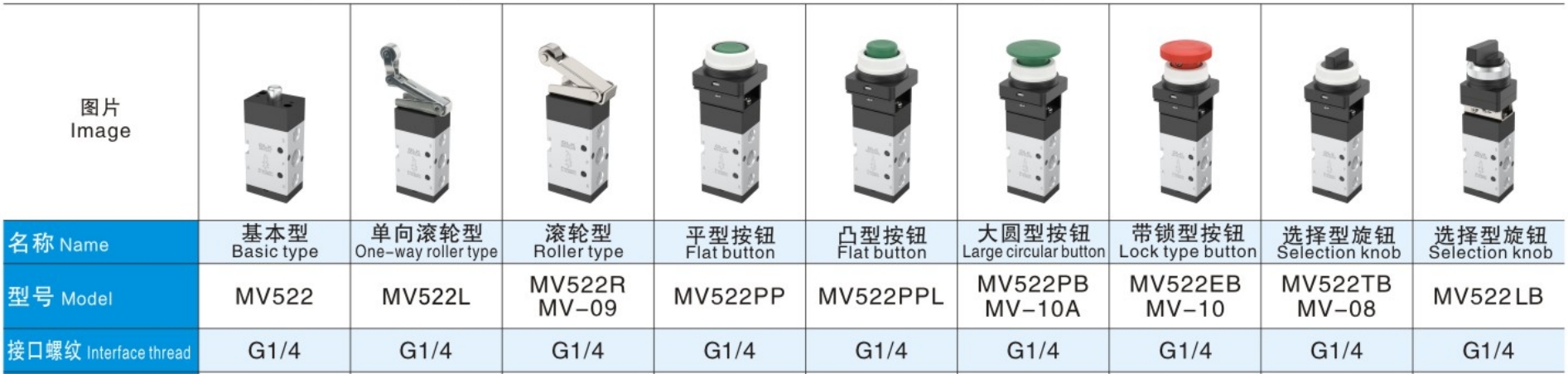 MV522 సిరీస్ మెకానికల్ బటన్ కంట్రోల్ వాల్వ్ 5 వే సాధారణ పారామితులు