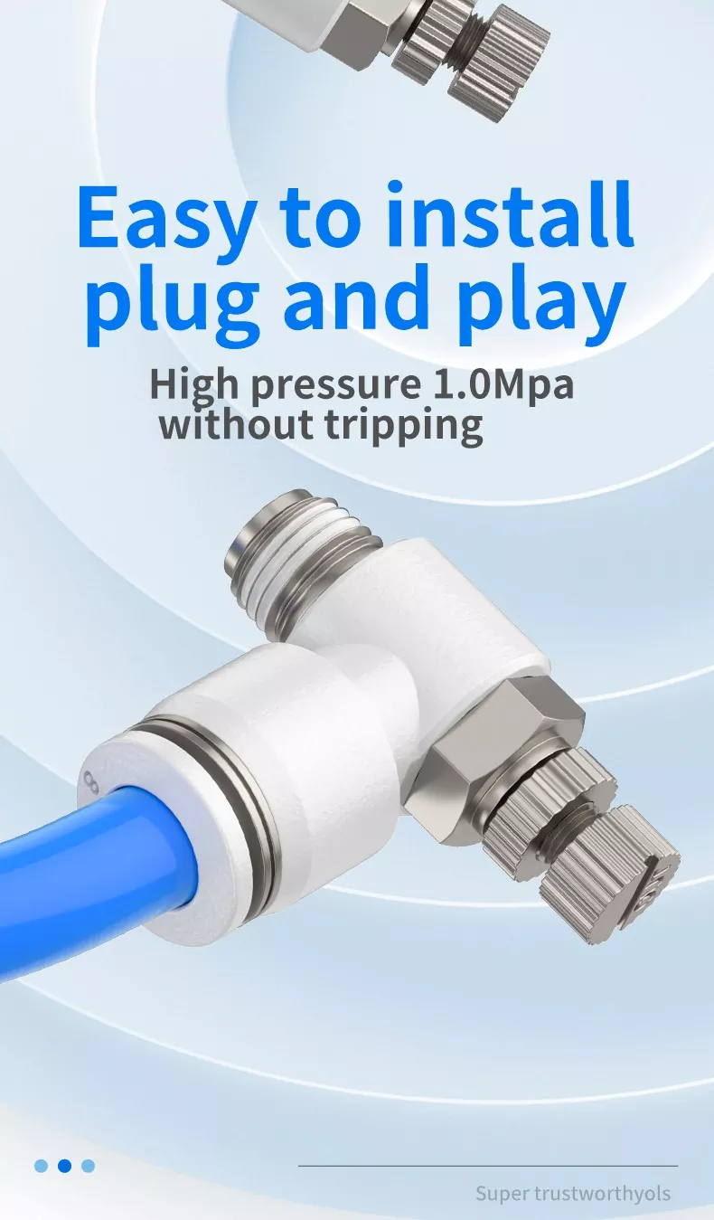 అమరికల ముగింపు నుండి ప్రవహించే గాలిని నియంత్రించండి. థ్రెడ్ ఎండ్ నుండి బయటకు ప్రవహించే ఫిట్టింగ్ల నుండి వచ్చే గాలి పరిమితి లేకుండా ఉంటుంది.