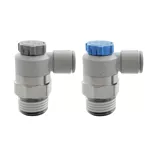 ఇవి ఇన్లెట్ మరియు ఎగ్జాస్ట్ థొరెటల్ వాల్వ్లు, క్యాప్ మార్కింగ్లు 'B' మరియు 'OUT' ద్వారా వేరు చేయబడతాయి. వాటిని కలిసి ఉపయోగించవచ్చు: ఇన్లెట్ థొరెటల్ వాల్వ్ గాలి సరఫరా ప్రవాహాన్ని సర్దుబాటు చేస్తుంది, అయితే ఎగ్జాస్ట్ థొరెటల్ వాల్వ్ మరింత ఖచ్చితమైన సిస్టమ్ నియంత్రణ కోసం సిలిండర్ వేగాన్ని నియంత్రిస్తుంది.