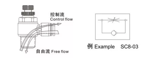 వన్-వే ఫ్లో కంట్రోల్ వాల్వ్ అనేది చెక్ వాల్వ్ మరియు సమాంతరంగా థొరెటల్ వాల్వ్తో కూడిన ఫ్లో కంట్రోల్ వాల్వ్. ఇది సాధారణంగా సిలిండర్ వేగాన్ని నియంత్రించడానికి ఉపయోగించబడుతుంది మరియు దీనిని స్పీడ్ కంట్రోలర్ అని కూడా అంటారు.