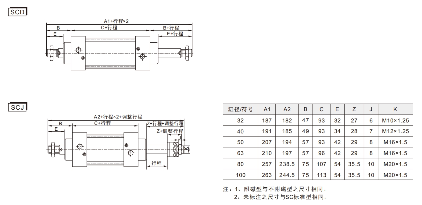 SC సిరీస్ ప్రామాణిక సిలిండర్ప్రామాణిక వివరణ పారామితులు: