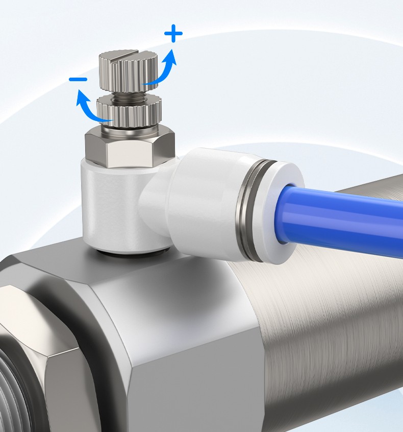 5. సిలిండర్ కుషనింగ్ యొక్క స్మూత్ సర్దుబాటు.