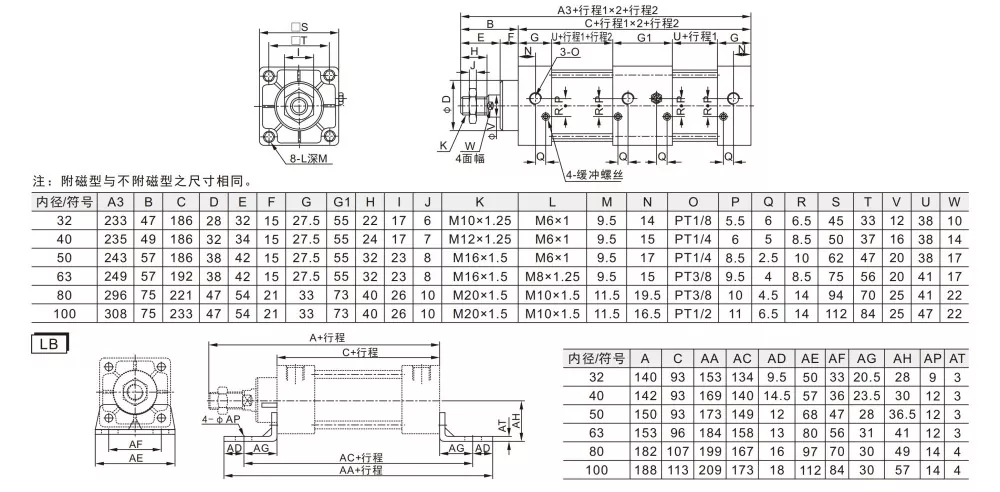 ·టై-రాడ్ రకం సిలిండర్; ముందు మరియు వెనుక కవర్లు అధిక విశ్వసనీయత కోసం టై రాడ్లతో అల్యూమినియం ట్యూబ్ బాడీకి అనుసంధానించబడి ఉంటాయి.