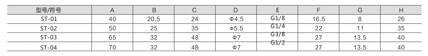 ఎయిర్ ట్యూబ్ ఫిట్టింగులు సరిగ్గా ఎంచుకోకపోతే, పోర్ట్ వద్ద గాలి తీసుకోవడం లేదా ఎగ్జాస్ట్ చాలా చిన్నదిగా ఉండటానికి కారణమైతే, వాల్వ్ కోర్ పూర్తిగా మారకపోవచ్చు, ఇది అన్ని పోర్టులను కనెక్ట్ చేయడానికి దారితీస్తుంది. దీనిని నిరోధించాలి. ST-01: G1/8; ST-02: G1/4; ST-03: G3/8; ST-04: G1/2