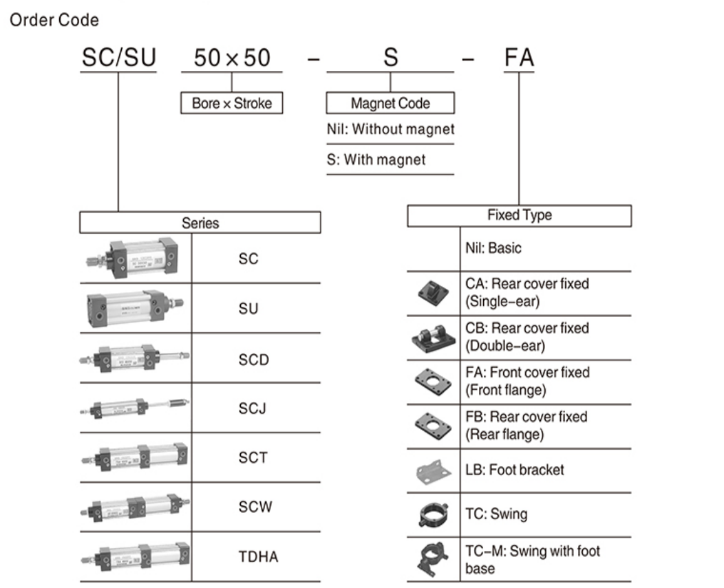 6. సిలిండర్ మౌంటు ఉపకరణాలు ఎస్సీ సిరీస్ సిలిండర్లతో పరస్పరం మార్చుకోగలవు.