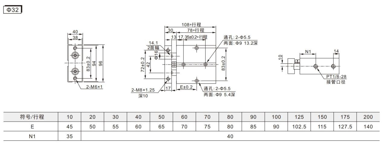 TN సిరీస్ డ్యూయల్ యాక్సిస్ సిలిండర్ ప్రామాణిక స్పెసిఫికేషన్: